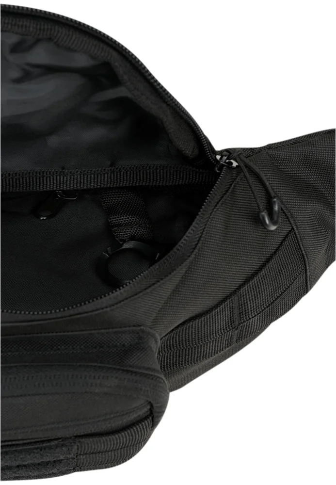 Der Gürtel aus funktionalem Polyester ist 120 Zentimeter lang integriert ist eine Organizer-Pouch sowie ein abnehmbarer Flaschenhalter. Die quadratische Pouch kommt mit einem praktischen Schnellverschluss. Hauptfach, Frontfach und Innenfach sind mit Reißverschlüssen ausgestattet. Das flexible Außenfach eignet sich perfekt für ein Smartphone, daneben sitzen schmale Steckfächer für Stifte oder Werkzeug. Der Flaschenhalter wird mit einem praktischen Kordelzug samt Stopper geschlossen. Er besitzt eine Schneeschürze und zwei elastische Fixierungsbänder als Molle-System-Schlaufen. Der Halter fasst Flaschen mit einem Volumen zwischen 0.5 und einem Liter und einem Durchmesser von 9 Zentimetern.
