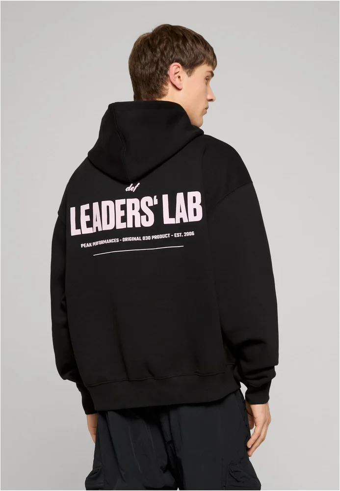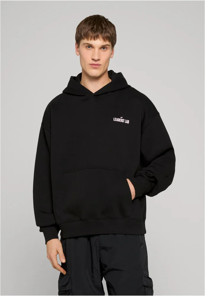 Dieser Kapuzenpullover im Oversize-Schnitt zeichnet sich durch seine überschnittenen Schultern und die markante Kapuze aus. Ein dezenter Logoprint ziert die linke Brustseite, während ein großflächiger „LEADERS‘ LAB“ Backprint auf dem Rücken ein klares Statement setzt. Die klassische Kängurutasche auf der Vorderseite sowie Rippbündchen an Ärmeln und Saum runden das Design funktional ab. Ein bequemer Begleiter mit ausdrucksstarkem Charakter.