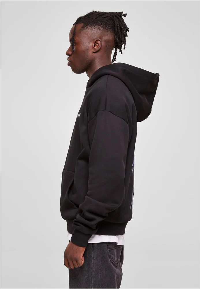 Hoody für den Alltag mit regular fit, der sich als relaxter Everyday-Layer eignet und durch eine voluminöse Kapuze sofort lässige Wirkung zeigt. Gefertigt aus schwerer Baumwolle mit matter Haptik, überzeugt das Modell durch eine plakative Brust- und Ärmengrafik sowie durch eine großzügige Kängurutasche, die Funktion und Komfort verbindet. Set-in-Ärmel und Rippbündchen an Ärmeln und Saum sorgen für eine klare Silhouette und angenehmen Sitz, während die normale Länge vielseitige Kombinationsmöglichkeiten erlaubt. Dezenter Druckakzent auf der Brust rundet das Design ab und macht den Hoody zur unkomplizierten Wahl für entspannte, zugleich gestaltete Looks.