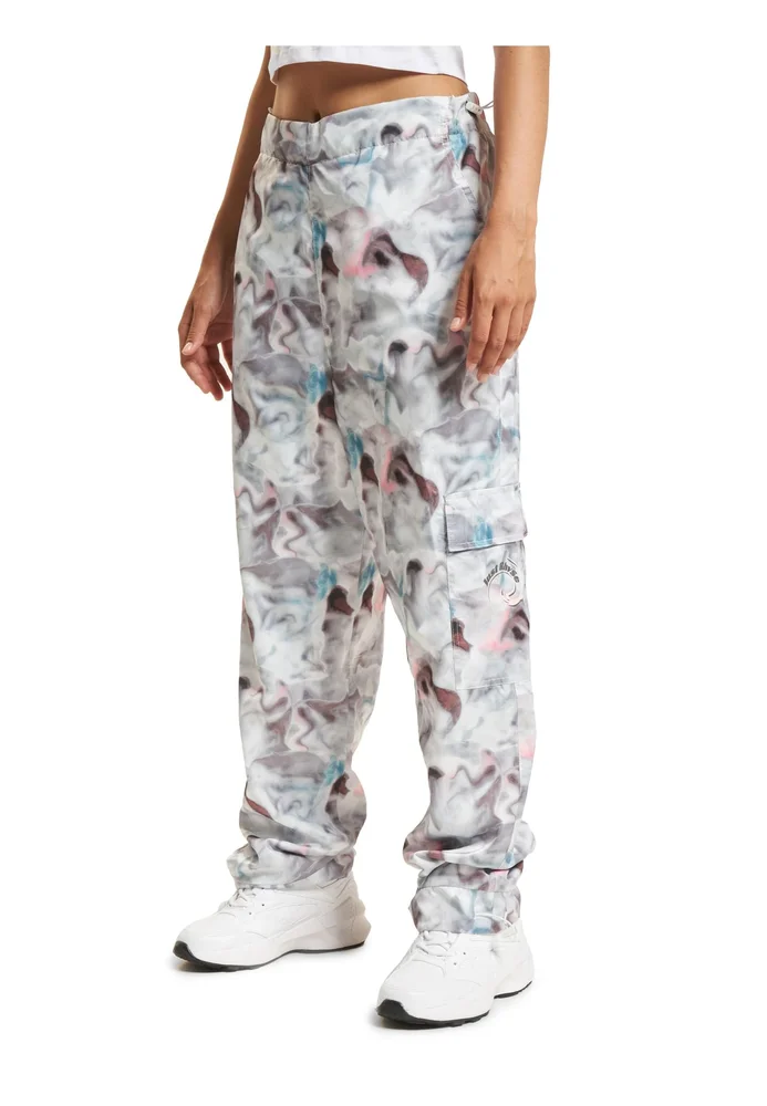 Diese Cargo-Hose definiert urbanen Style durch ihren großflächigen, abstrakten All-Over-Print neu. Die lockere Passform wird durch funktionale Details wie seitliche Eingrifftaschen und markante Cargo-Taschen an den Beinen ergänzt. Ein elastischer Bund sorgt für individuellen Tragekomfort, während verstellbare Kordelzüge an den Beinabschlüssen eine variable Silhouette ermöglichen. Ein dezentes Logo-Detail auf der Beintasche unterstreicht die hochwertige Design-Ästhetik dieser modernen Streetwear-Hose.