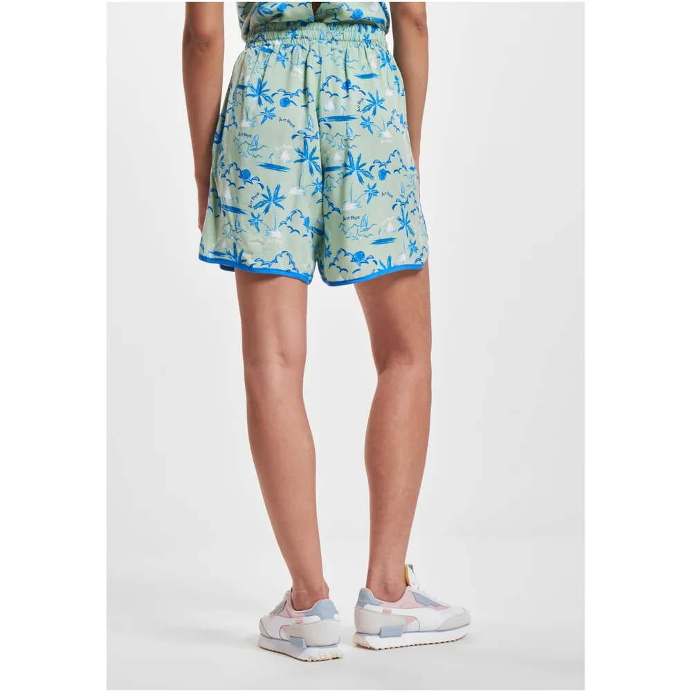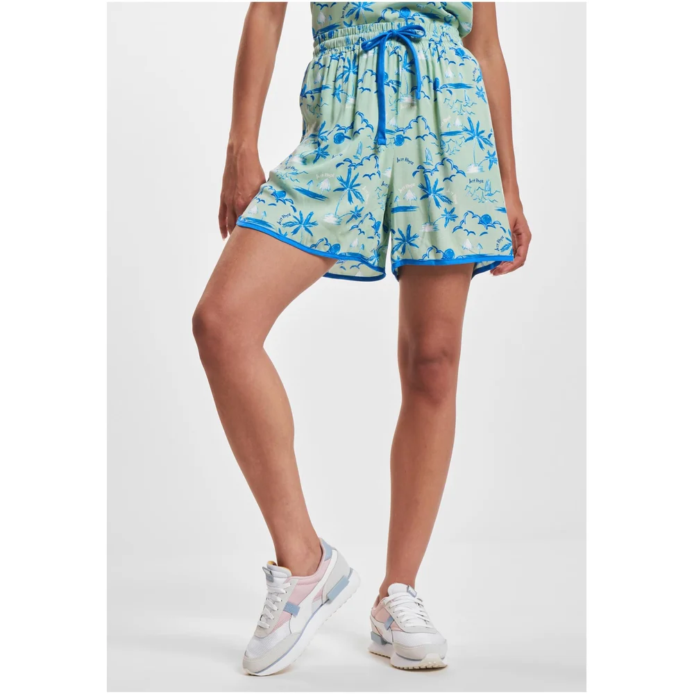 Die Just Rhyse Shorts Waikiki vereinen Stil und Komfort auf eindrucksvolle Weise. Gefertigt aus weichem Viskosematerial, umschmeicheln sie die Haut und bieten ein angenehmes Tragegefühl, ideal für warme Tage. Der lockere Schnitt und der praktische Kordelzug sorgen für eine mühelose Anpassung, während die hohen Taille einen schmeichelhaften Sitz garantiert. Zwei innere Taschen bieten Platz für kleine Essentials und machen diese Shorts zu einem funktionalen Begleiter im Alltag. Das auffällige Allover-Muster verleiht jedem Outfit eine lebendige Note, perfekt für einen lässigen Stadtbummel oder entspannte Stunden am Strand.