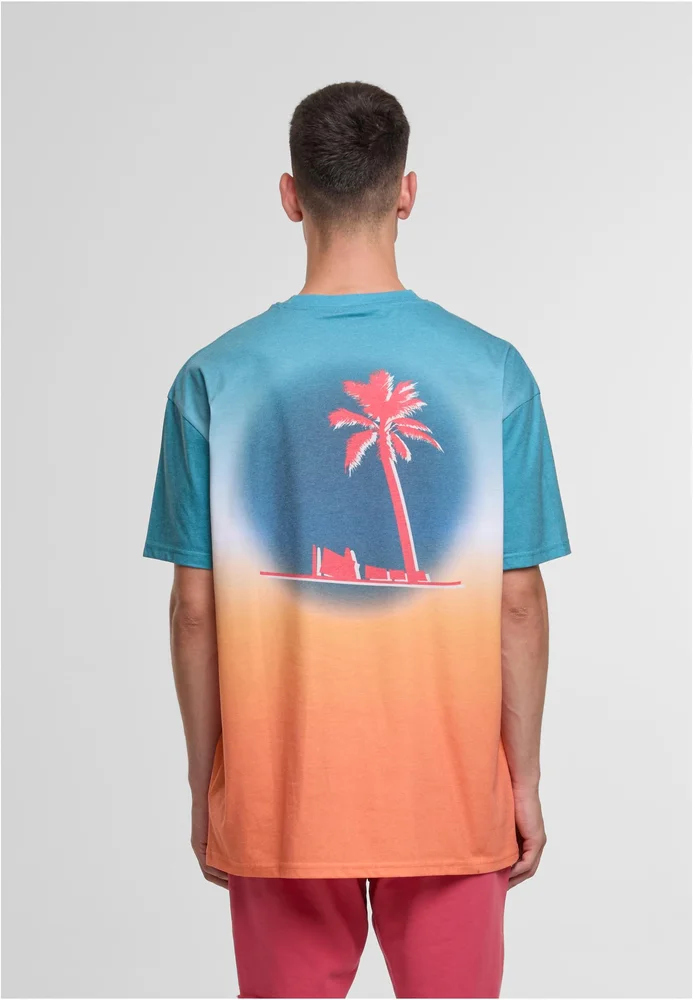 Tauchen Sie ein in sommerliche Nächte mit diesem markanten Tanktop. Das Design fängt die Stimmung eines tropischen Sonnenuntergangs ein und kombiniert sie mit kühlen, geometrischen Mustern für einen modernen Kontrast.