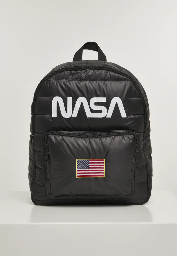 Ein cooler und praktischer Reisebegleiter für jeden Anlass. Der Rucksack mit dem ikonischen NASA Schriftzug Print und dem USA-Flaggen Patch auf dem Front-Fach beeindruckt mit coolem Design im Stile einer Puffer-Jacke. So hast Du alles dabei und siehst dabei auch noch stylisch aus.