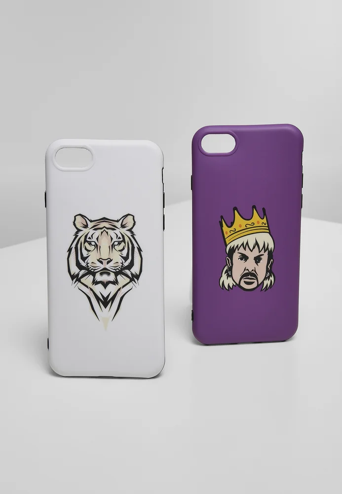 Dieses Handyhüllen Zweierset für Smartphones der Modelle iPhone 6,7 und 8 ist ein echter Hingucker und an Großkatzen angelehnt. Die zwei Farbvarianten gibt es mit den passenden Motiven: einem aufwändigen Tigerkopf sowie dem Dompteur samt schräg sitzender Krone. Die angesagten Handyhüllen bestehen aus TPU Material, was sie besonders robust und stoßfest macht.
