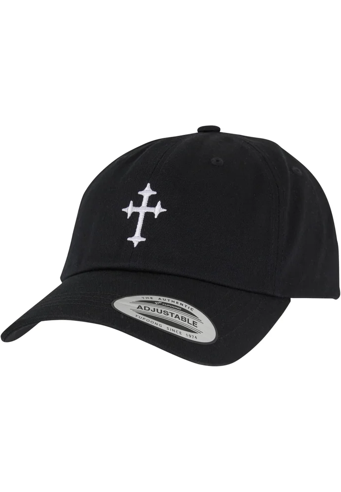 Basecap für den Alltag mit entspanntem, relaxed-fit-Charakter und klarer Alltagsfunktion: Der klassische sechsteilige Schnitt zeigt abgesetzte Nähte und eine gestickte Kreuz-Applikation vorn, während die gewölbte Schirmlinie lässigen Schatten spendet. Hergestellt aus robustem Baumwoll-Twill mit stofflicher Struktur, bietet die Konstruktion angenehme Haptik und Formbeständigkeit bei häufiger Nutzung. Ein verstellbarer Verschluss, von rechts nach links geführt, sorgt für individuell anpassbaren Sitz, ergänzend durch kleine Belüftungsösen und eine oberseitige Knopfleiste, die den typischen Cap-Look abrundet. Ideal als lockere Alltagsschicht und vielseitiges Accessoire für entspannte Outfits.