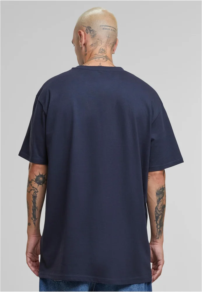 T-Shirt in Oversize-Fit, ideal als relaxte Everyday-Layer mit langem Schnitt und kurzem Ärmel für lässige Outfits. Das Stück besteht aus Baumwolljersey und vermittelt eine dichte, strukturierte Haptik bei gleichzeitig angenehmem Tragegefühl, wodurch es sich gut für mehrere Lagen oder solo eignet. Der runde Halsausschnitt und die eingesetzten Ärmel sorgen für klassische Proportionen, während der gerade Saum das längere Finish betont. Auf der Brust zeigt sich ein großer Print als zentrales Designelement, das dem cleanen Gesamteindruck Kontrast verleiht, und die Verarbeitung wirkt sauber und robust, sodass der Sitz auch bei häufigem Tragen erhalten bleibt.