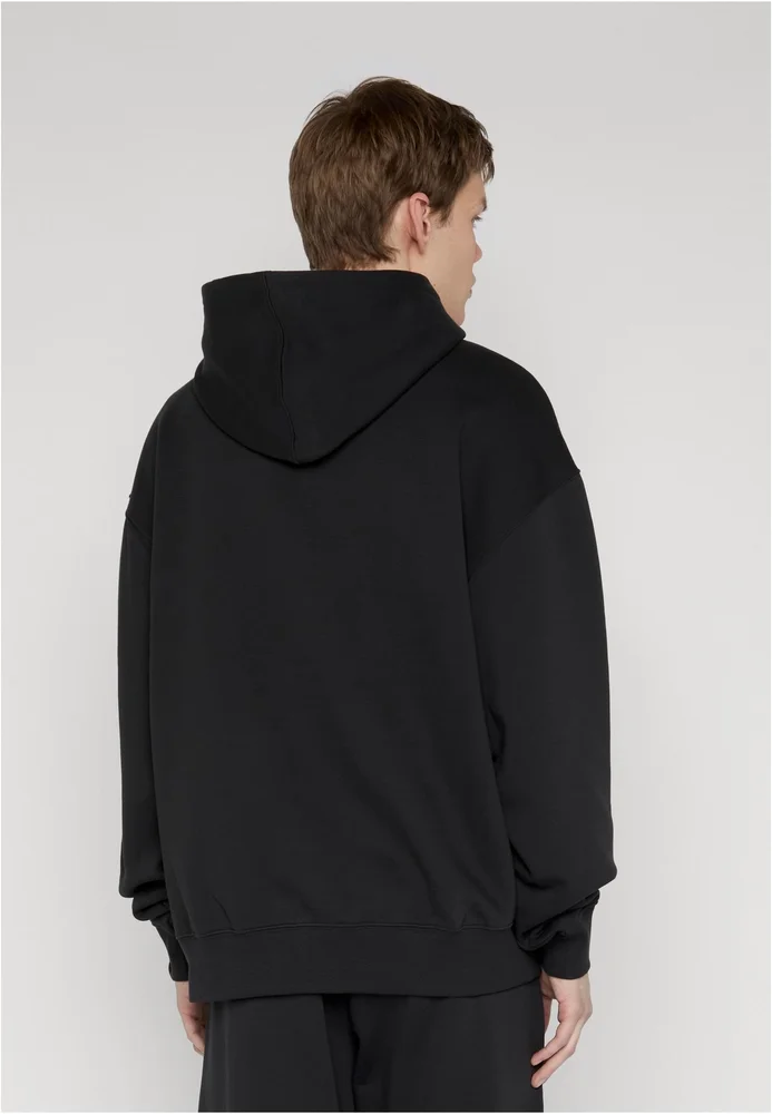 Dieser Kapuzenpullover besticht durch seine lässige Oversized-Passform mit markant überschnittenen Schultern. Während die Vorderseite durch einen dezenten Logo-Print auf der Brust akzentuiert wird, findet sich auf der Rückseite eine großflächige grafische Komposition. Der Rücken-Print kombiniert eine dynamische Typografie mit einem illustrativen Globus-Motiv. Eine klassische Kängurutasche sowie breite Rippbündchen an Ärmeln und Saum vervollständigen das funktionale Design dieses Streetwear-Essentials.