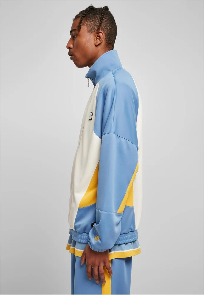 Light Jacket, gestaltet als sportliche Track-Jacke und ideal als vielseitige Alltagsschicht: Das locker geschnittene Modell aus Polyester-Trikot trägt sich angenehm leicht und zeigt einen stehenden Kragen mit durchgehendem Reißverschluss vorne. Die Konstruktion kombiniert eingesetzte Ärmel mit Rippbündchen am Saumabschluss und an den Handgelenken sowie reguläre Länge für unkomplizierten Sitz. Auffällige Einsätze, gestickte Details und ein geprägtes Patch setzen klare Akzente, während eine schmale Leiste und aufgesetzte Eingrifftaschen die Funktion ergänzen. Das Design arbeitet mit Logo-Motiven auf der Brust und metallischen Details für einen urbanen Look, der sich als relaxter Layer über T?Shirts oder unter einer weiteren Jacke tragen lässt.