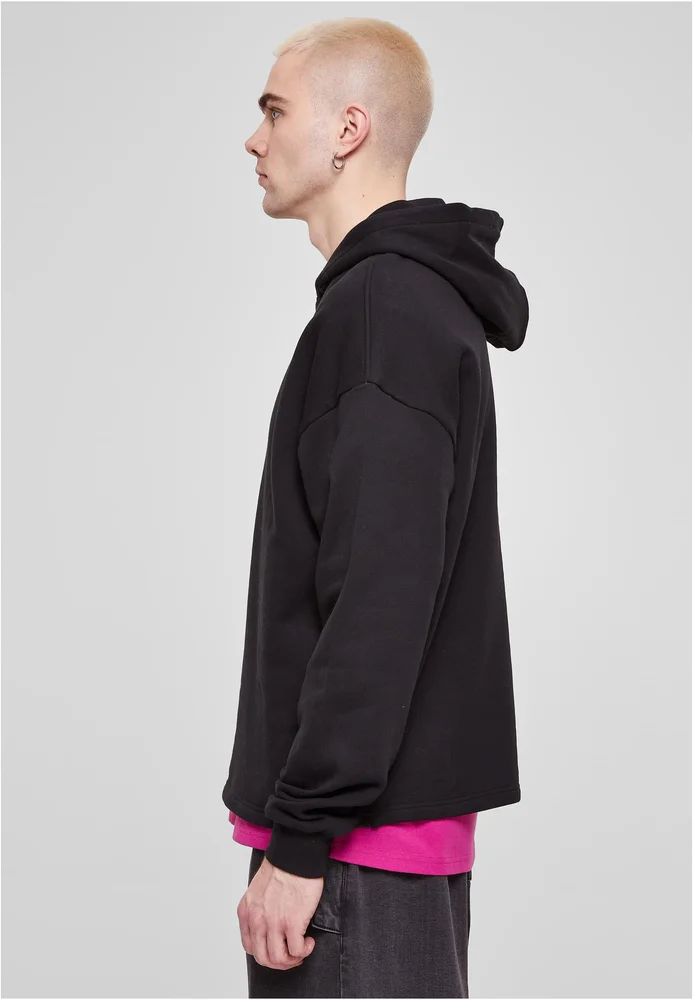 Der Herren Hoodie kommt in besonderer Ausführung mit Kapuze, breiten Ärmelbündchen sowie Seitentaschen. Den Style-Akzent setzt die angesagte Oversize Passform mit überschnittenen Schultern. Der Männer Hoodie besteht aus hochwertiger Bio-Baumwolle.