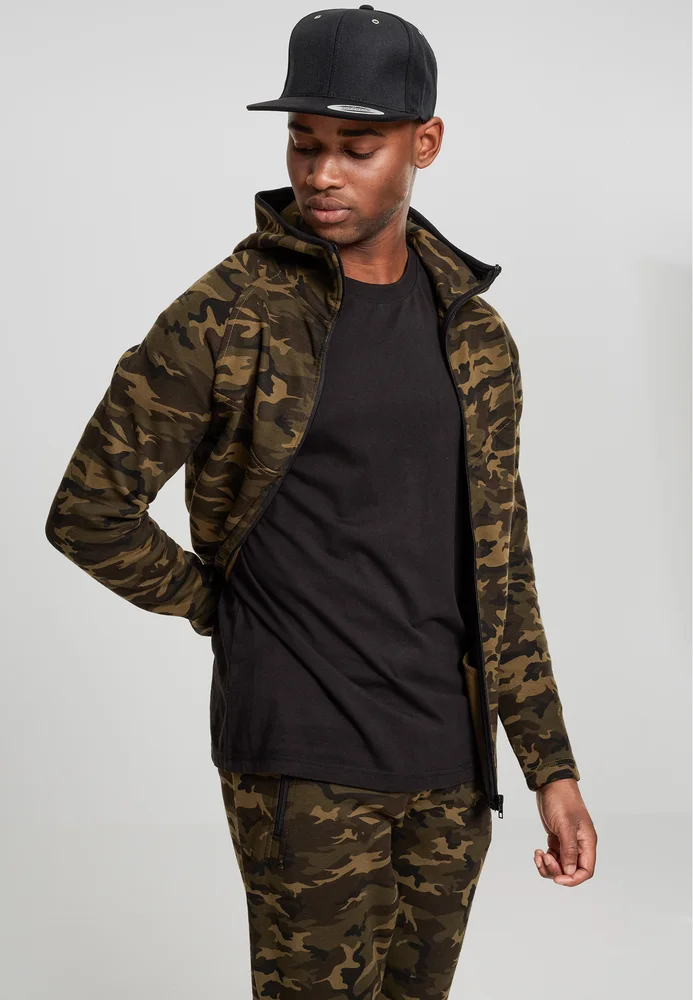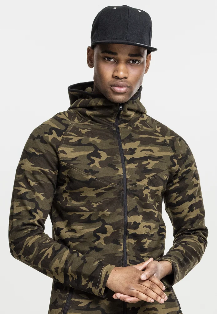 Das Interlock Camo Zip Jacket lässt in Sachen Optik und Funktionalität keine Wünsche offen: Schmaler, sportlicher Schnitt, bequemes Interlock-Material, stylischer Camouflage-Look. Dazu kommen eine High-Neck-Kapuze, farblich abgesetzte Säume, diagonale Nähte auf der Brust und seitliche Zip-Taschen ein Teil, das zu allem bereit ist.