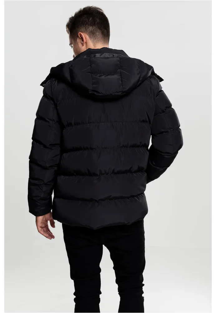 Der blockfarbene Herren Hoodie betont durch die dunkel abgesetzte obere Sektion die Schultern und das Gesicht. Die Kapuze verfügt anstatt der üblichen Kordeln über einen schimmernden Druckknopf. Der verwendete Stoff ist geschmeidiges Terry. Der Schnitt des Männer Hoodies ist leicht kürzer als regular und erinnert an die gutgelaunten 80s. Unten auf der Känguru-Tasche sitzt noch ein Urban Classics Logo Patch.