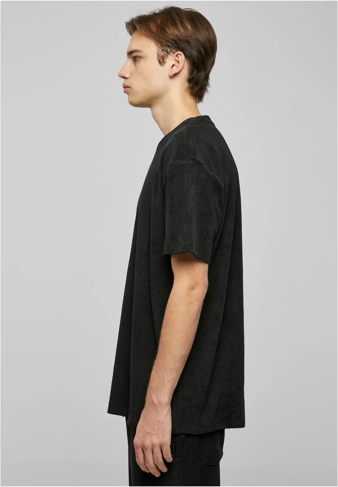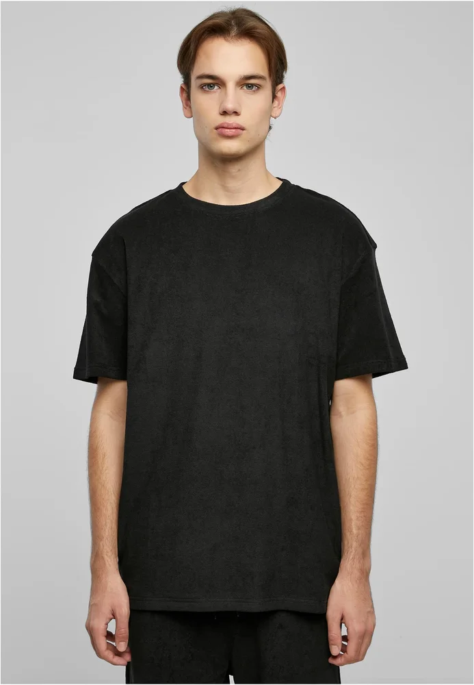 Das einfarbige Herren T-Shirt präsentiert sich unprätentiös im legeren Oversized Fit und mit dazugehörigen überschnittenen Schultern, einem klassischen Rundhalsausschnitt sowie Ärmel, die kurz über dem Ellenbogen enden. Besonders bequem ist der verwendete Baumwoll-Stoff, der für noch mehr Komfort angeraut wurde.