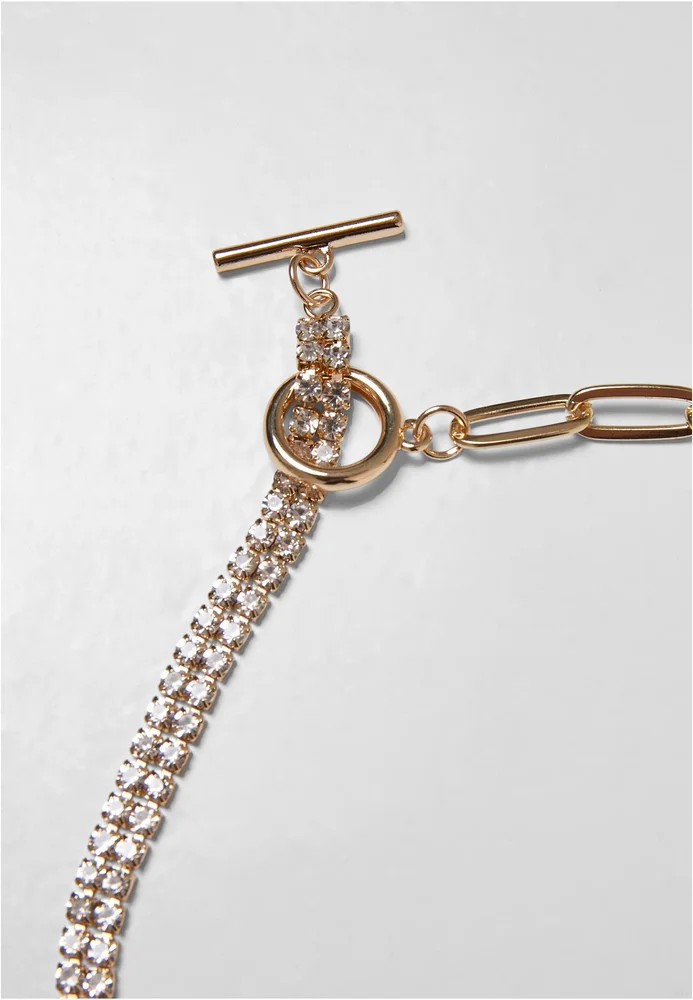 Perfekt kombiniert für einen rundum stimmigen Urban Style: eine funkelnde Gliederkette und das dazu passende Armband machen es möglich. Beide Teile bestehen aus einer Zink-Legierung und Glas und kommen als Set daher. Jedes zweite Glied der flachen Panzerketten ist mit glitzernden Steinchen besetzt für einen maximalen modischen Impact. Ein Must Have für jede Saison.
