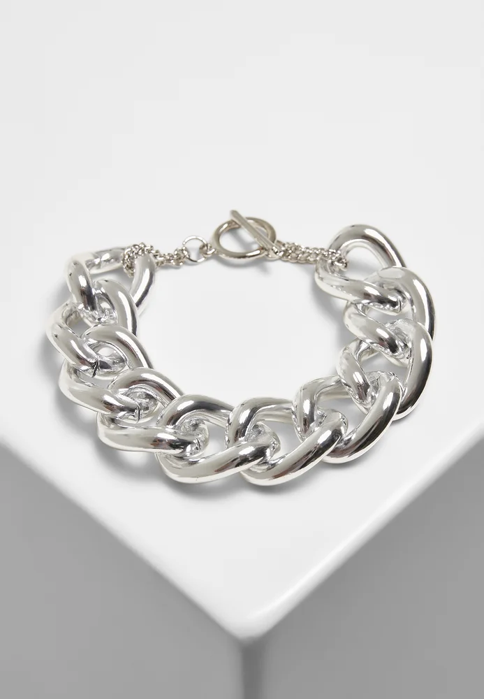 Das wuchtige Urban Classics Armband besitzt große Kettenglieder und hat eine runde Panzerkettenform. Es besteht aus einer Aluminium-Legierung und wird mit einem Steckverschluss geschlossen. Verfügbar ist es in zwei Größen.