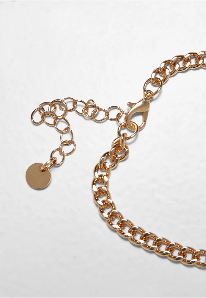Das Urban Classics Armband setzt mit seinen großen, schweren Panzerkettengliedern und den drei integrierten, flachen Amuletten fette Akzente. Die Amulette zeigen sich in Form von drei Köpfen, umrahmt von einem altgriechischen Muster. Das Schmuckstück kommt in zwei Größen und besteht aus einer Zink-Legierung.