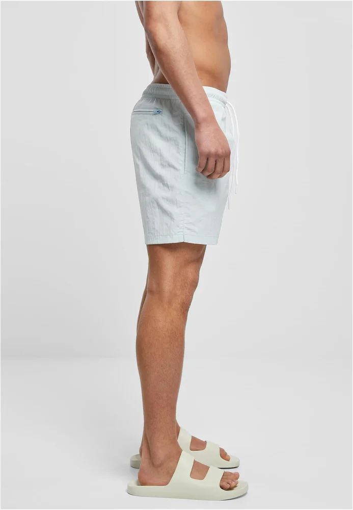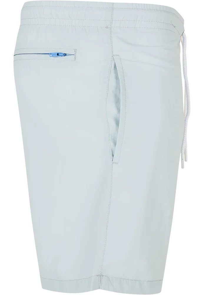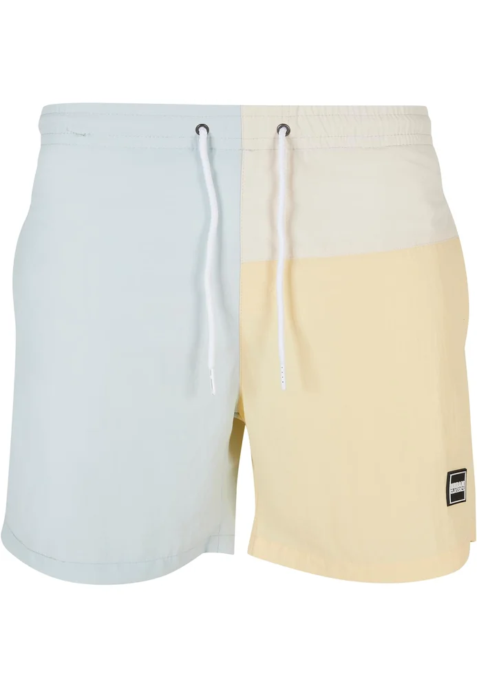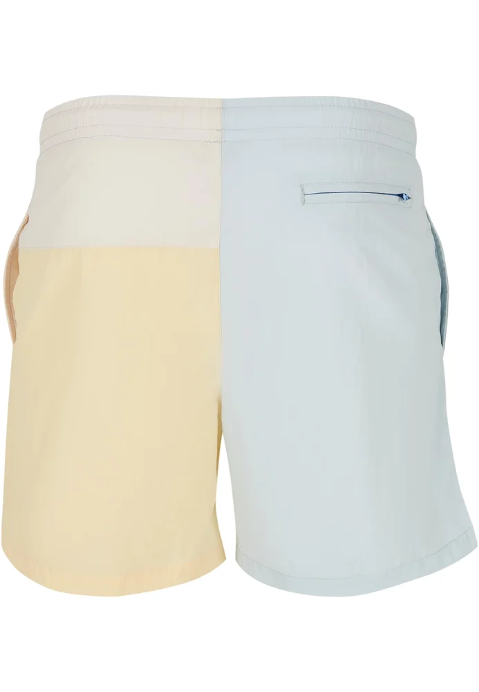 Die Herren Schwimm-Shorts machen mit ihrem asymmetrischen Colorblock-Design den Sommer zu einem Erlebnis. Ihr elastischer Bund mit Kordelzug und eine bewährte Regular Fit Passform sorgen für einen optimalen Sitz. Praktisch sind die beiden Seitentaschen sowie eine integrierte Gesäßtasche. Die Männer Schwimm-Shorts bestehen aus Nylon und ist mit einem Polyester Mesh gefüttert. Ihr Style wird von einem feinen Urban Classics Patch auf dem linken Oberschenkel abgerundet.
