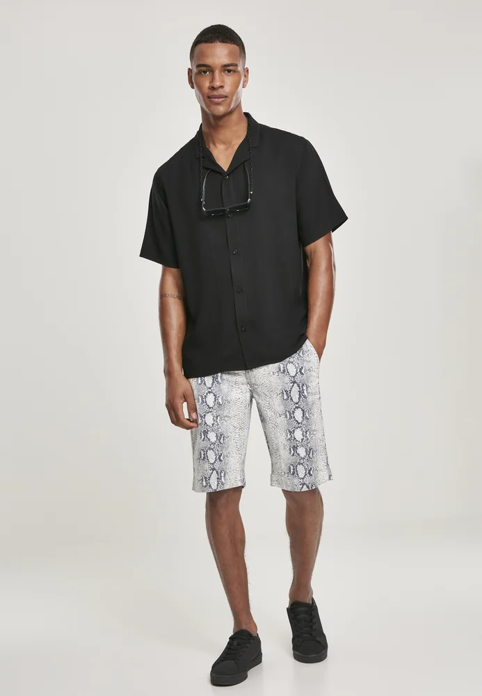 Mut zur Bissigkeit beweist du mit diesen Stretch Shorts im Allover-Animal-Print. Zur starken Musterung in White Leo oder Offwhite Snake kommt der Look daher. Seitentaschen und ein klassischer Bund mit Knopf, Reißverschluss und Gürtelschlaufen runden dieses gute Stück ab.