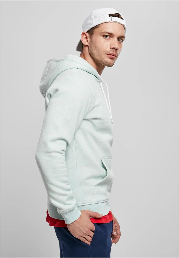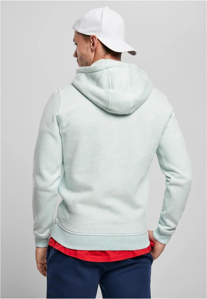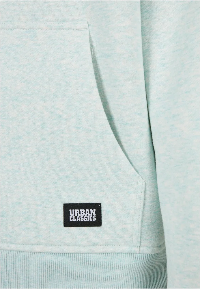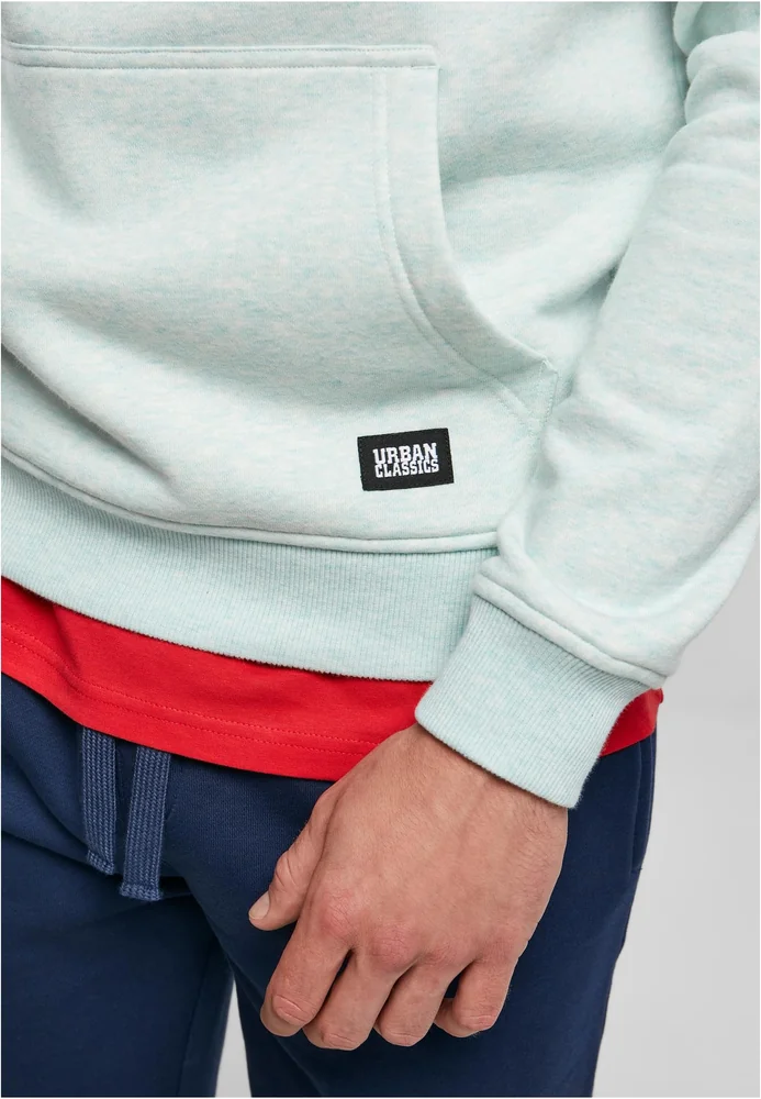 Das Herren Kapuzen-Sweatshirt hat alles, was ein Männer Hoodie braucht: eine gemütliche Kapuze mit Kordelzug, aufgewertete Metallenden, eine Känguru-Tasche mit einem kleinen Urban Classics Weblabel sowie Ripp-Ärmelbündchen und einen Ripp-Saum. Design Highlight des Herren Hoodys ist die edle Melange-Optik. Dazu punktet er mit 1A-Tragekomfort, dank regulärer Passform und weichem Brushed Fleece Stoff.