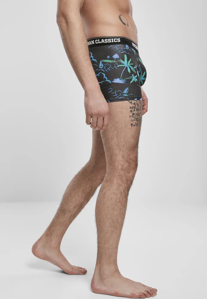 Spätestens wenn die Jeans fällt, kommt der Moment der Wahrheit. Damit du zu diesem Zeitpunkt nicht mit löchrigen Strickunterhosen dastehst und vor Scham in den Boden versinken musst, zieh dir lieber gleich vernünftige Boxer an. Hier bekommst du jeweils drei unterschiedliche Farbmotive zum Vorteilspreis. Jede Shorts ist zudem mit einem durchgängigen Urban Classics Schriftzug am Bund bestückt und sitzt wie eine Eins.