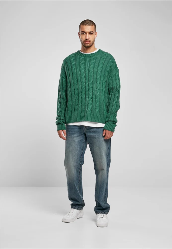Der einfarbige Männer Strickpullover gibt sich mit einem großen Zopfmuster auf der Front und den Ärmeln gediegen klassisch. Breite, gerippte Bündchen an Ärmeln und Saum und ein ebenfalls gerippter Rundhalsausschnitt komplettieren den Look. Maximales Wohlgefühl schafft der Männer Pulli mit seiner Passform: ein Oversize bzw. Boxy Fit mit weit überschnittenen Schultern. Er ist aus weichem Acryl gefertigt.