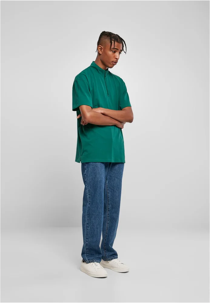 T-Shirt für den Alltag mit markanter Stehkragen-Optik und einem durchgehenden Reißverschluss von links nach rechts, das als lässige, oversized Silhouette eine entspannte Passform bietet und sich als vielseitige Everyday-Layer eignet. Aus Baumwoll-Piqu gefertigt, vermittelt es eine strukturierte, atmungsaktive Haptik, die sich angenehm auf der Haut anfühlt und sich leicht kombinieren lässt. Die kurze Ärmelanlage mit eingesetzten Ärmeln sorgt für sauberen Sitz an den Schultern, während die reguläre Saumlänge neutral abschließt und Bewegungsfreiheit bewahrt. Dezentes, einfarbiges Design ohne sichtbare Details macht das Piece zum unaufgeregten Grundstein für casual Outfits mit urbanem Charakter.