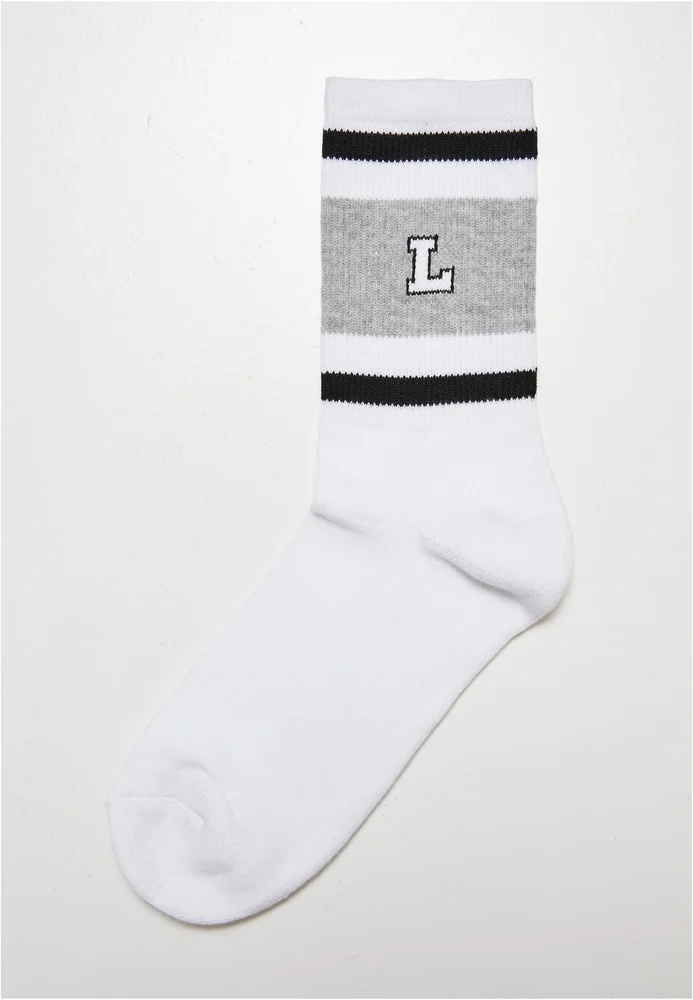 Super sportlich sind diese College Strümpfe mit eingewirkten Buchstaben auf einem wadenhohen, gerippten Schaft, welcher von mehreren Blockstreifen im Colorblock-Style eingerahmt wird. Sie sind in vier Größen erhältlich. Tragekomfort bringen das bewährte Material aus Baumwolle, Polyester und Elasthan sowie schmale, elastische Bündchen.