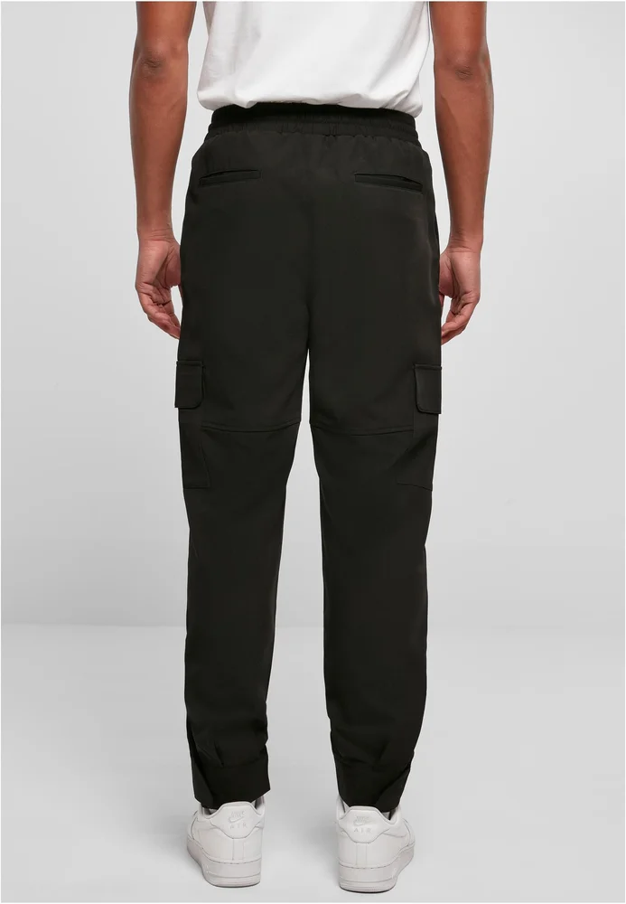 Mit ihrem leichten Material aus Viskose, Polyester und Elasthan und durchdachtem Style punktet die Männer Cargo-Hose mit einem schlichten Look. An den Außenseiten der Oberschenkel sitzen zwei flache Cargo-Taschen, zudem besitzt die Herren Hose zwei Seitentaschen sowie zwei integrierte Gesäßtaschen. Tragekomfort garantiert der elastische Bund mit Kordelzug. Die Beinenden der Männerhose sind mit einem Klettverschluss verstellbar. Die Hose hat eine bewährte Regular Fit Passform.