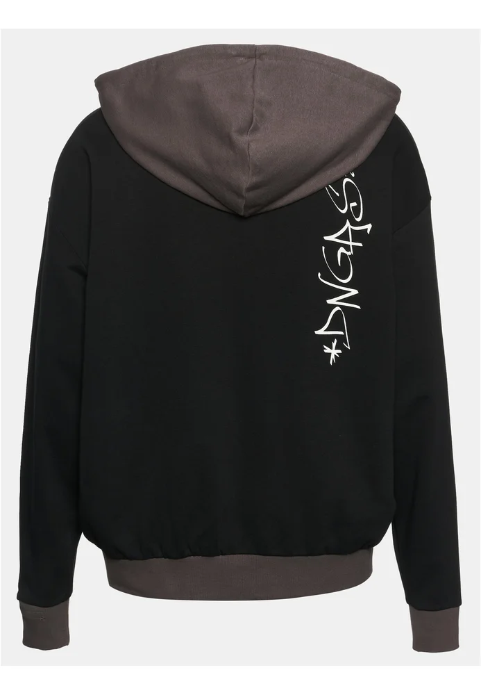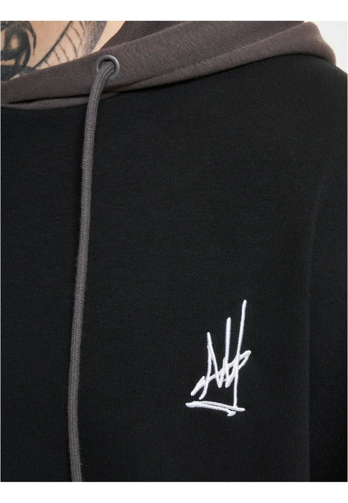 Dieser moderne Hoodie setzt auf ein kontrastreiches Design mit farblich abgesetzter Kapuze sowie passenden Bündchen an Ärmeln und Saum. Ein dezenter Stick auf der Brust und ein vertikaler Schriftzug im Urban-Style auf der Rückseite verleihen dem Piece einen individuellen Look, während die lockere Passform für ein entspanntes Tragegefühl sorgt.