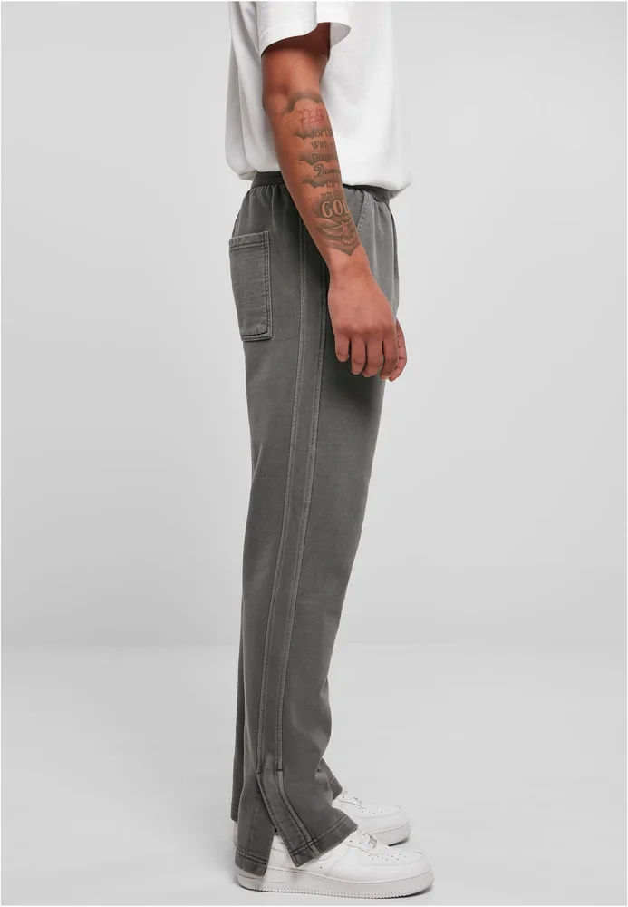 Die Männer Sweatpants geben sich mit einer leicht gebleichten Waschung und einem Einsatz entlang der Seitennähte sowie mit geschlitzten Beinenden souverän. Tragekomfort bringen ein schweres Material aus weichem Baumwoll-Terry, eine trendige Loose Fit Passform sowie ein elastischer Bund mit praktischem Kordelzug im Inneren. Die Herren Jogger verfügen außerdem über eine aufgesetzte Gesäßtasche und zwei Seitentaschen.