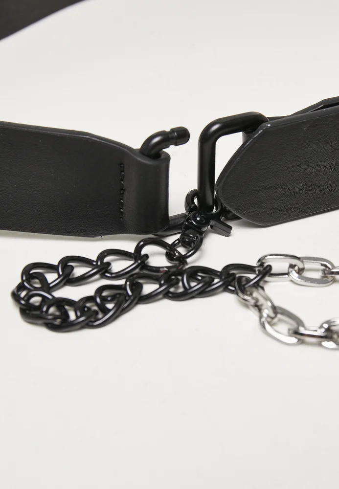 Imitation Leather Belt With Metal Chain