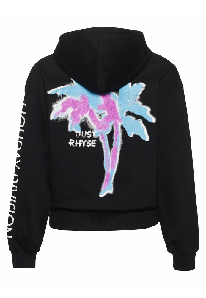 Der Just Rhyse Holiday Division Hoody vereint lässigen Stil mit Komfort und Funktionalität. Hergestellt aus weichem Baumwollstoff, bietet der Hoody ein angenehmes Tragegefühl den ganzen Tag über. Die Kapuze mit Kordelzug sorgt für zusätzlichen Schutz und eine individuelle Passform, während das auffällige Print-Muster modische Akzente setzt. Mit seinen langen Ärmeln und dem regulären Schnitt ist dieser Hoody die ideale Wahl für entspannte Tage oder aktive Unternehmungen. Kombiniert mit Jeans oder Jogginghose wird er schnell zum Lieblingsstück im Kleiderschrank. Ein Muss für modebewusste Frauen, die Wert auf Qualität legen.