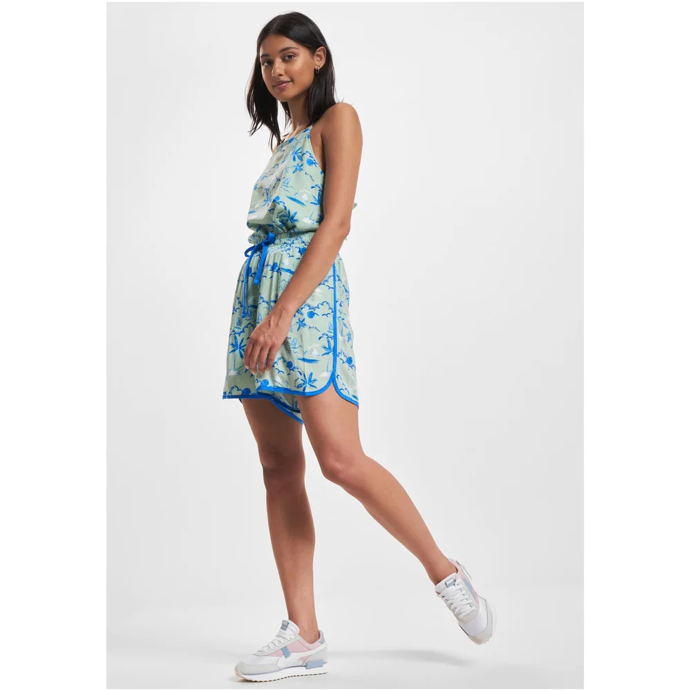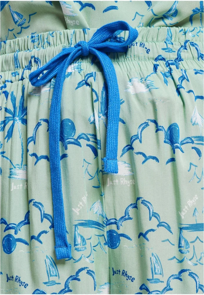 Die Just Rhyse Shorts Waikiki vereinen Stil und Komfort auf eindrucksvolle Weise. Gefertigt aus weichem Viskosematerial, umschmeicheln sie die Haut und bieten ein angenehmes Tragegefühl, ideal für warme Tage. Der lockere Schnitt und der praktische Kordelzug sorgen für eine mühelose Anpassung, während die hohen Taille einen schmeichelhaften Sitz garantiert. Zwei innere Taschen bieten Platz für kleine Essentials und machen diese Shorts zu einem funktionalen Begleiter im Alltag. Das auffällige Allover-Muster verleiht jedem Outfit eine lebendige Note, perfekt für einen lässigen Stadtbummel oder entspannte Stunden am Strand.