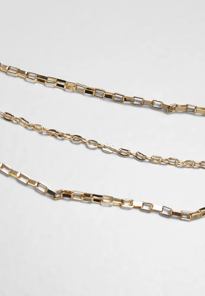 Das Urban Classics Schmuckstück besteht aus einer Kombination von drei unterschiedlich langen Panzerketten. Die längste davon trägt ein rundes Amulett im Stil einer römischen Münze mit einem geprägten Kopf. Die Kette ist die perfekte Ergänzung eines jeden Street Wear Outfits. Sie besteht aus Eisen und einer Zinklegierung.