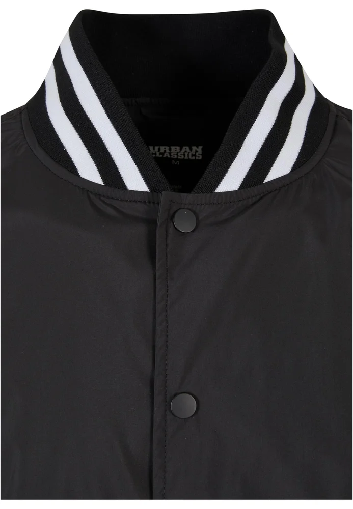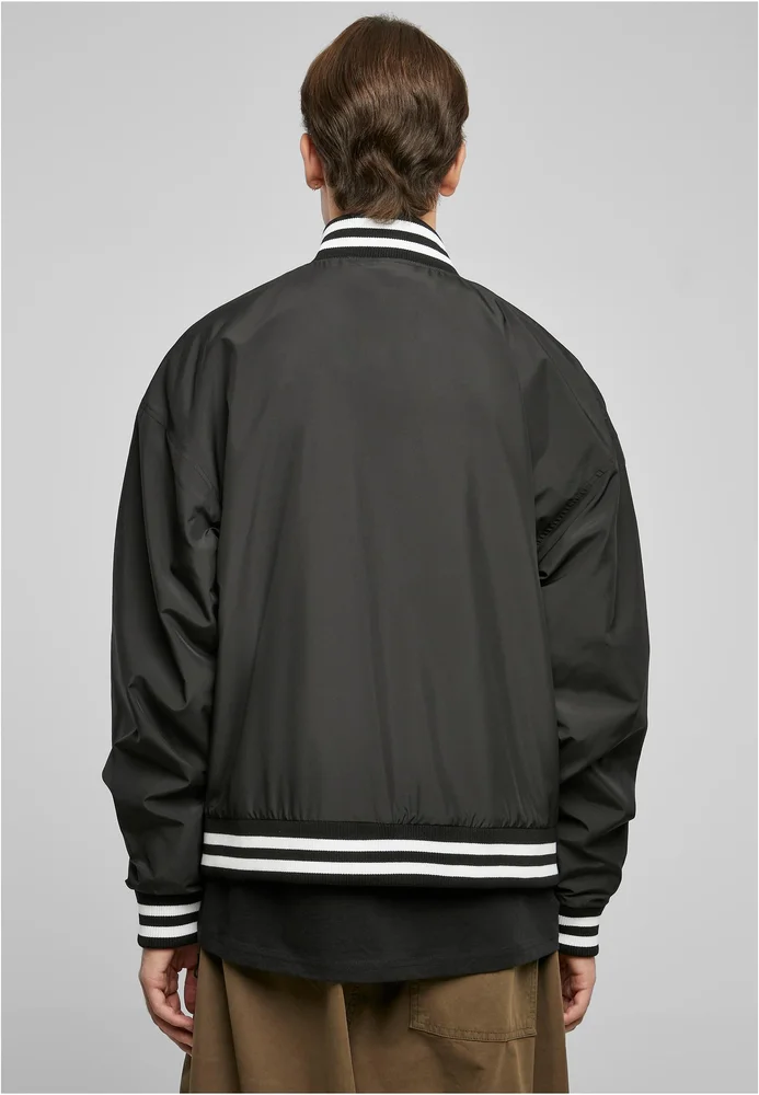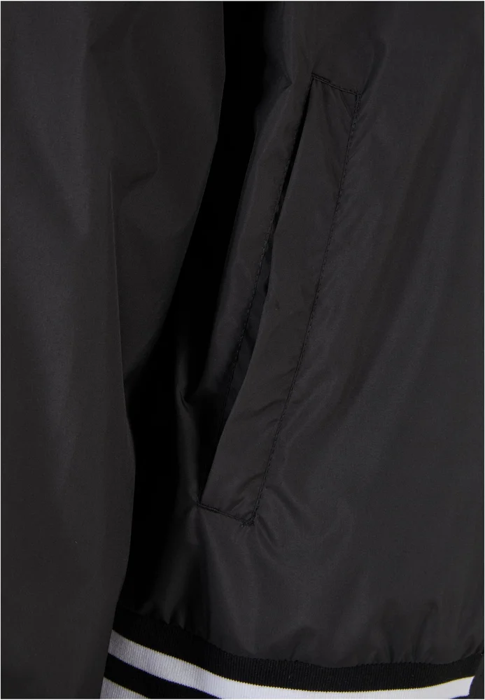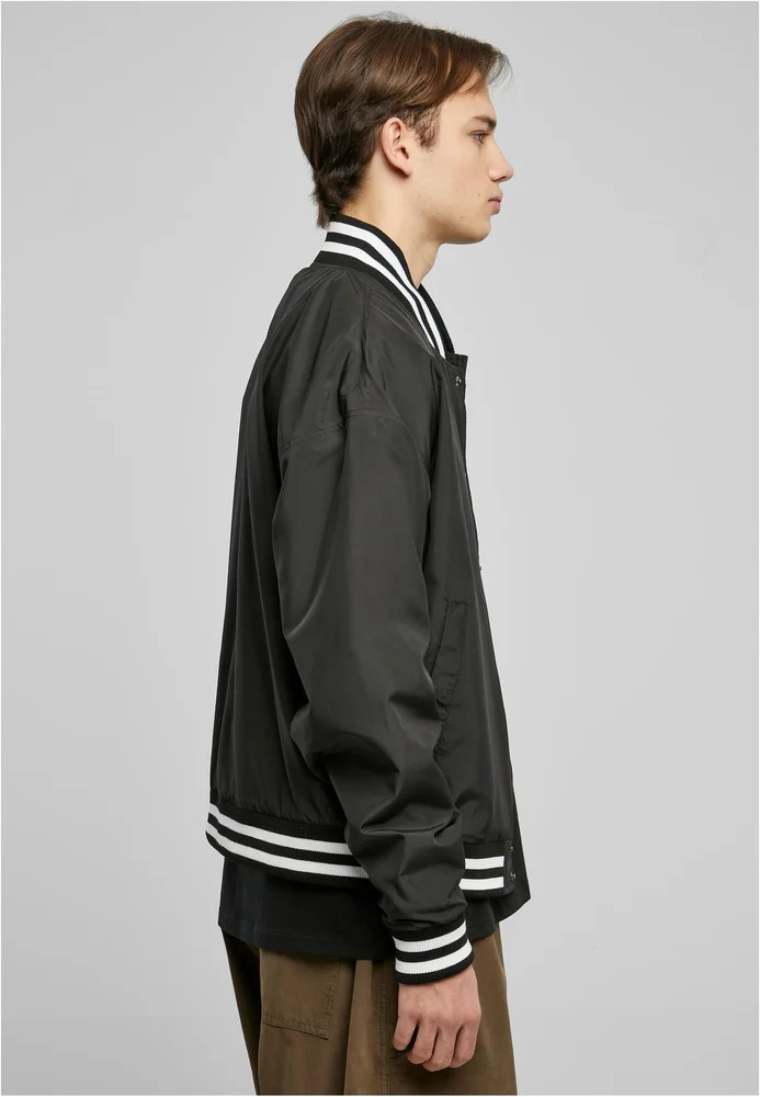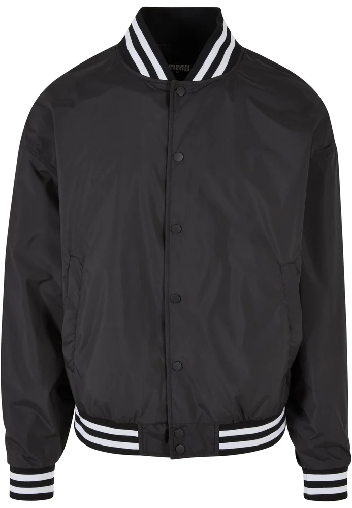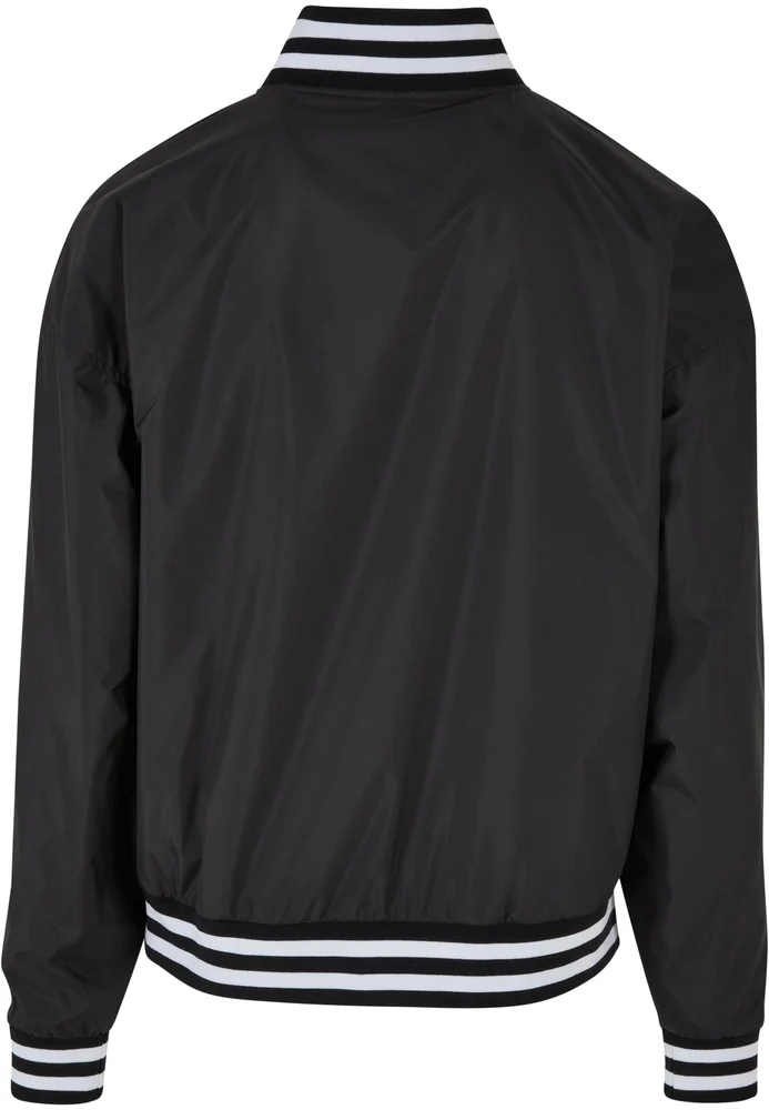 Die leichte Herren College Jacke in stimmigem Farbdesign bringt alles Nötige mit: gestreifte Rippenbündchen an Ärmeln und Saum, einen gestreiften, gerippten Stehkragen und eine lange Metallknopfleiste auf der Front. Das Inneren ist mit weichem Taft gefüttert. Die Männer College Jacke hat zwei Seitentaschen sowie Innentaschen. Sie besteht aus Polyester und ist als Style-Highlight eine komfortable Loose Fit Passform mit leicht überschnittenen Schultern.