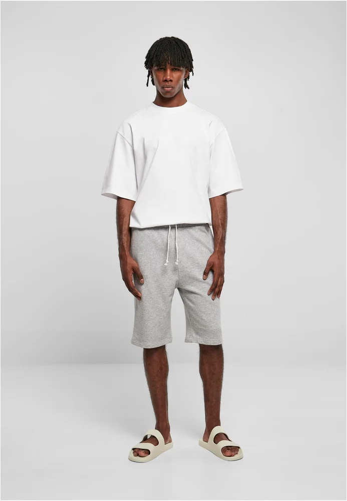 Die urbanen Herren Shorts bedecken das Knie und punkten darüber hinaus mit einem bequemen Sitz. Zur regulären Passform gibt es einen tiefen Schritt. Zudem verfügt die Herren Hose über einen elastischen Bund mit einem langen Kordelzug zum Knoten. Abgerundet wird der hippe Style durch zwei Seitentaschen. Die Sweatshorts bestehen aus super bequemen Terry Stoff.