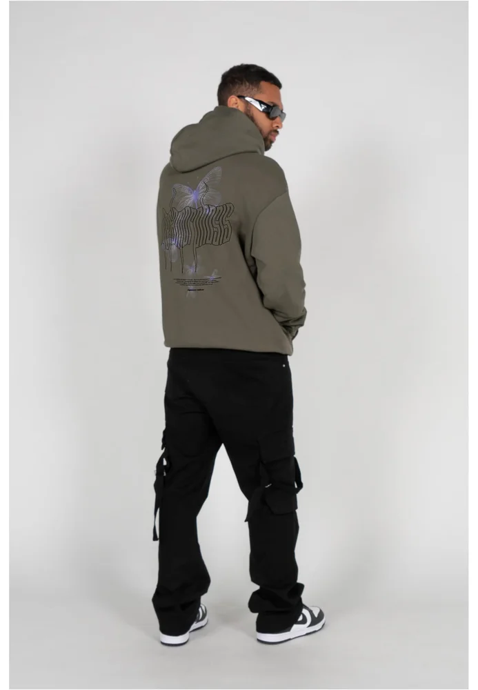 Schwerer Oversized MJ Gonzales Hoody in Grün, gewohnter MJG Fit mit hochwertigem Metamorphose Druck, hergestellt aus unserem hochwertigen 460gsm Baumwollstoff.