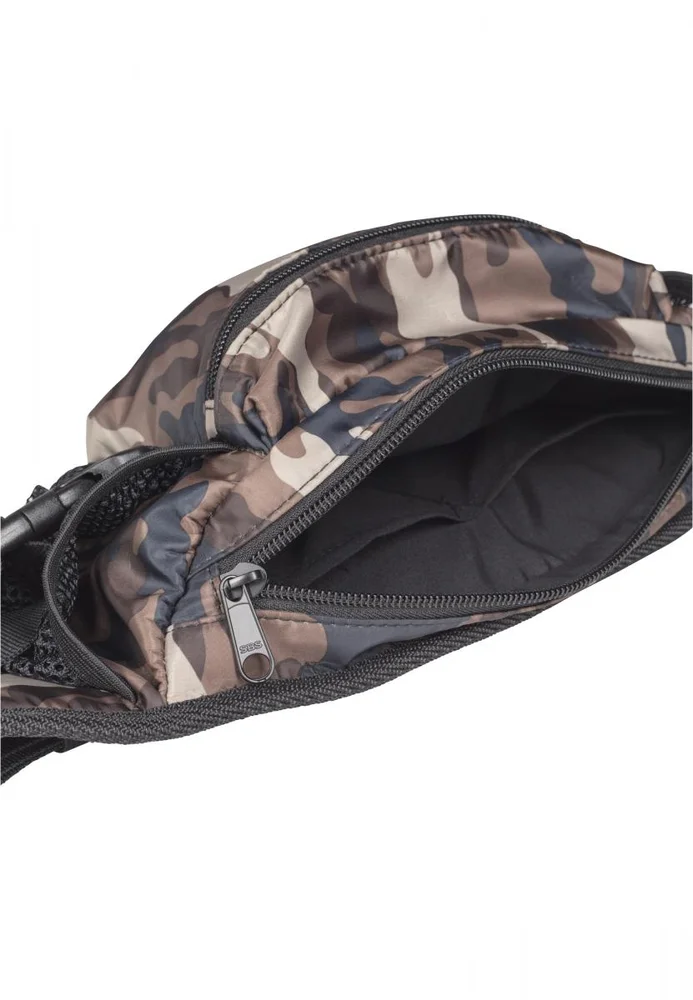 Kleine Tasche, viele Fächer: Die Hip Bag in angesagter Camouflage-Optik ist dank zwei Zip-Fächern und offenen seitlichen Mesh-Fächern flexibel und überraschend geräumig. Dank dem verstellbaren Hüftgurt passt sie immer wie angegossen. Eine gepolsterte Rückseite der Tasche sorgt für optimalen Tragekomfort, auch wenn die Hip Bag voll gepackt ist.