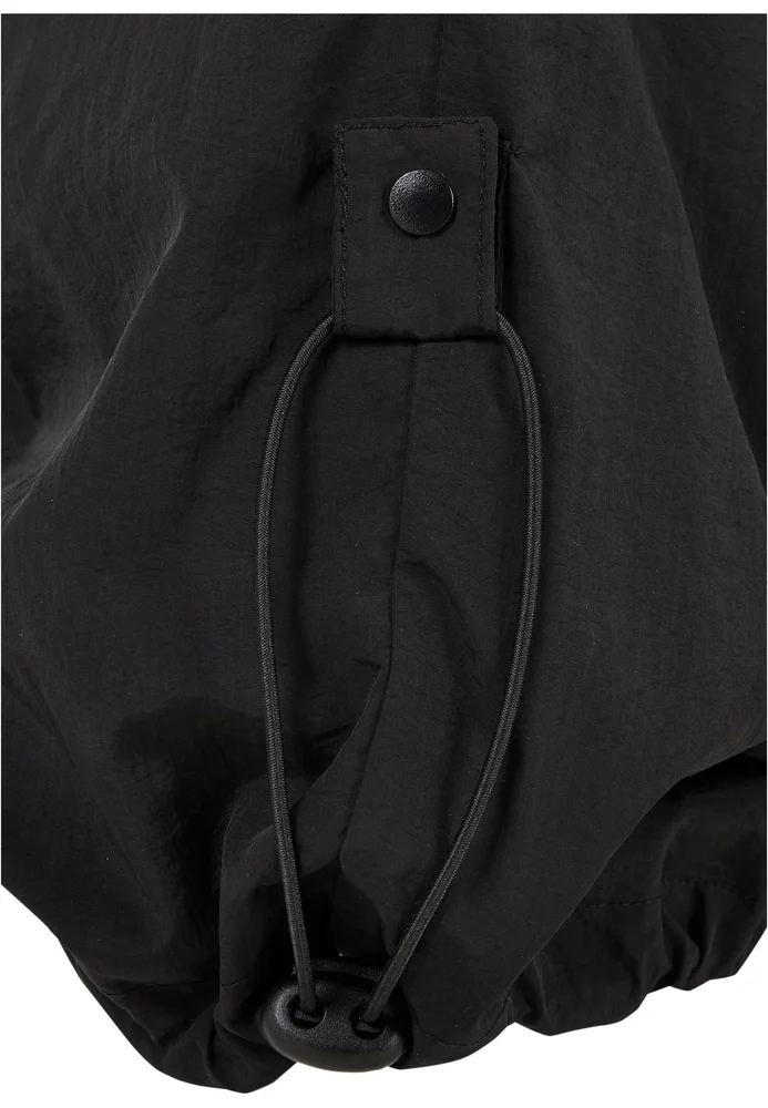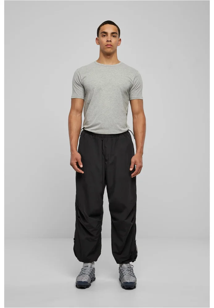 Mit einem weiten Material aus robustem Nylon und Kordelzügen mit Stopper am Bund sowie an den Beinabschlüssen ist die Herren Fallschirmhose rundum stimmig designt. Die Hose ist mit einer Gesäß- sowie Seitentaschen ausgestattet und aufwändig mit Mesh und Taft gefüttert. Sie hat eine bequeme, zeitgemäße Oversize Passform.