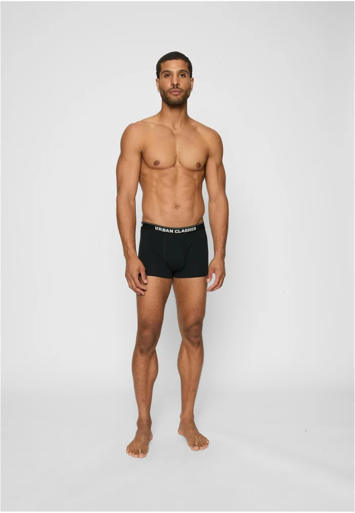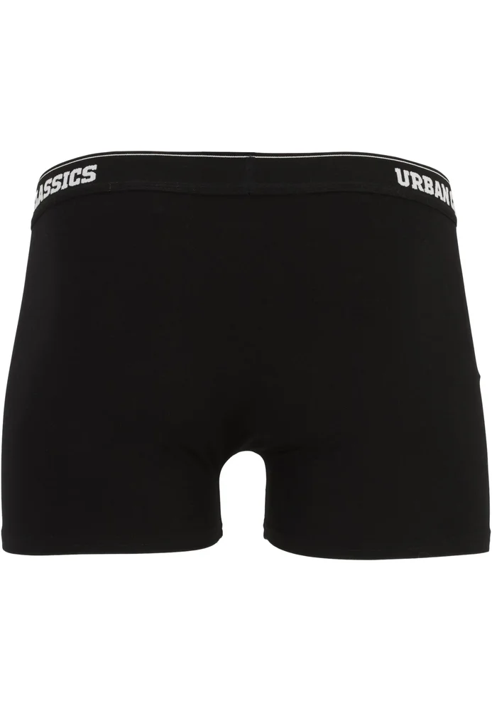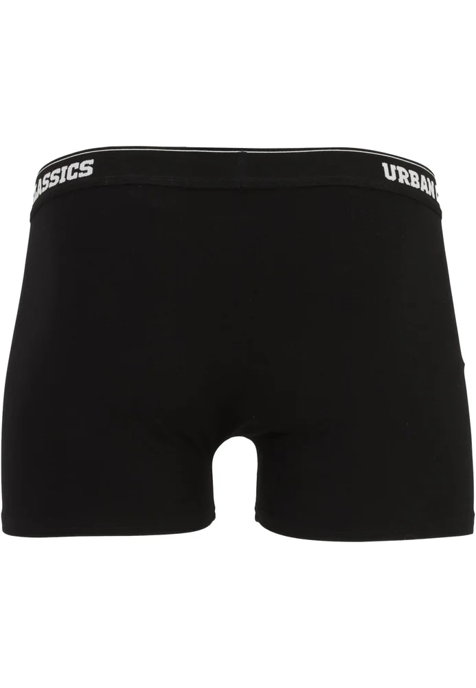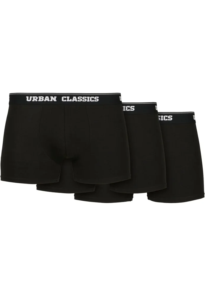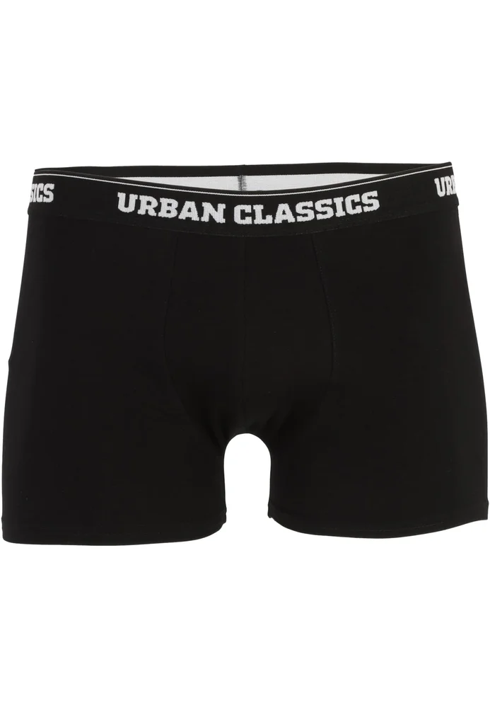 Besten Tragekomfort und einen schlichten Look vereinen diese Männer Boxer-Shorts im Dreierpack. Sie kommen in den Farben Schwarz, Weiß und Blau plus Branding daher. Alle drei Unterhosen besitzen einen bequemen Elastikbund mit einem umlaufendem Urban Classics Schriftzug und haben eine normale Passform. Die Herren Boxer sind aus hautfreundlicher Bio-Baumwolle gefertigt.