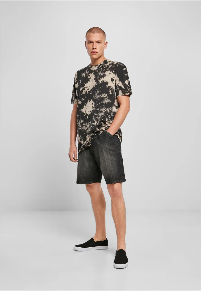 Das Männer Tee ist ein raffinierter Begleiter für vielseitige Anlässe und passt besonders gut zu dunklen Hosen und Shorts. Der Schnitt ist leicht oversize. Der Ausschnitt ist ein klassischer breiter Rundhals. Das Highlight des Herren T-Shirts ist das partielle Bleachingmuster, das sofort die Aufmerksamkeit auf sich zieht.