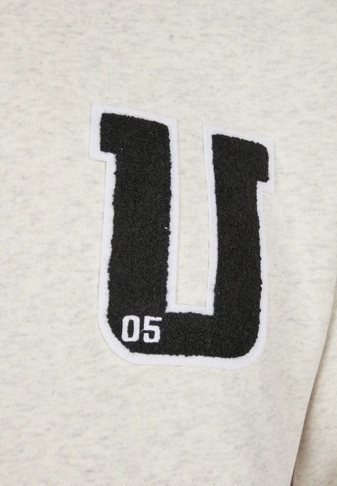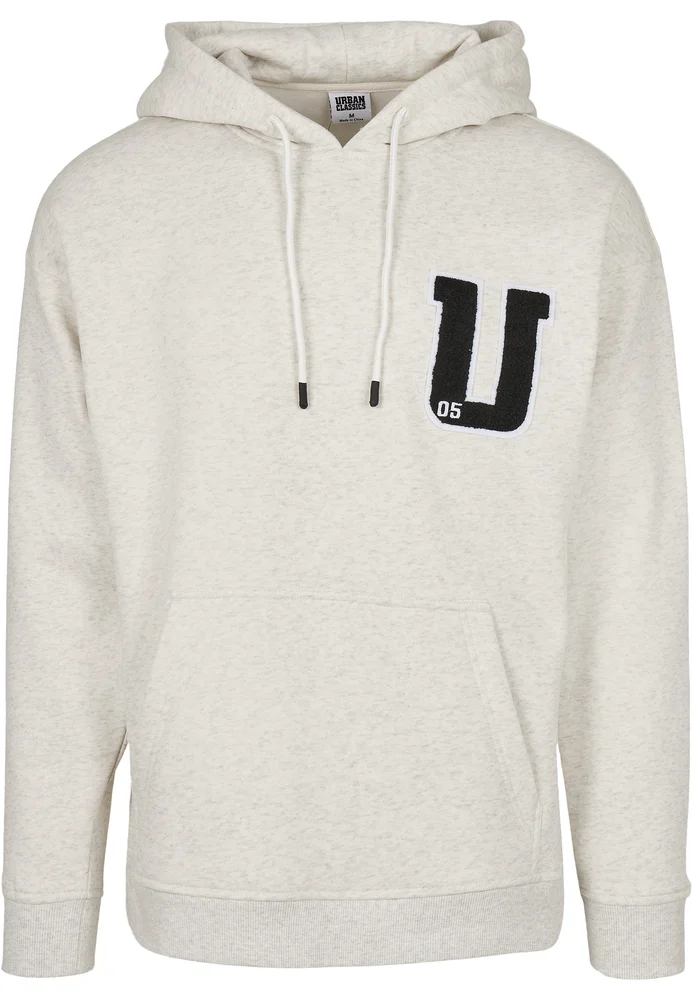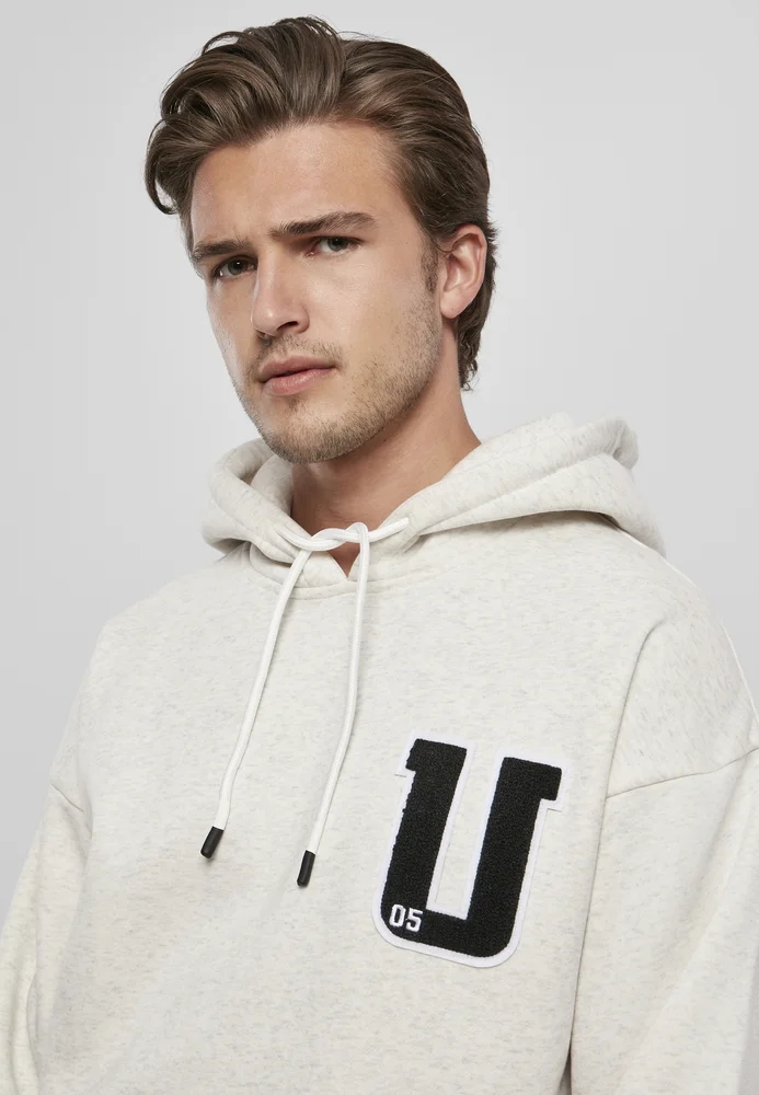 Ein authentischer Männer Hoodie im hippen Sweater-Style. Perfekt passend zur melierten Farbe und dem Fleece-Material sitzt auf der linken Brust ein U-Patch aus Frottee welches für Urban Classics steht. Die kleine weiß gestickte 05 steht für das Gründungsjahr der Marke. Dazu gibts als Style-Extras eine lässige Oversize-Passform und klassische Herren Kapuzen-Pulli Zutaten: Kapuze mit Kordeln, deren Enden hochwertig mit zweifarbigem Silikon eingefasst sind, Känguru-Tasche sowie breite Rippenbündchen an Ärmeln und Saum.