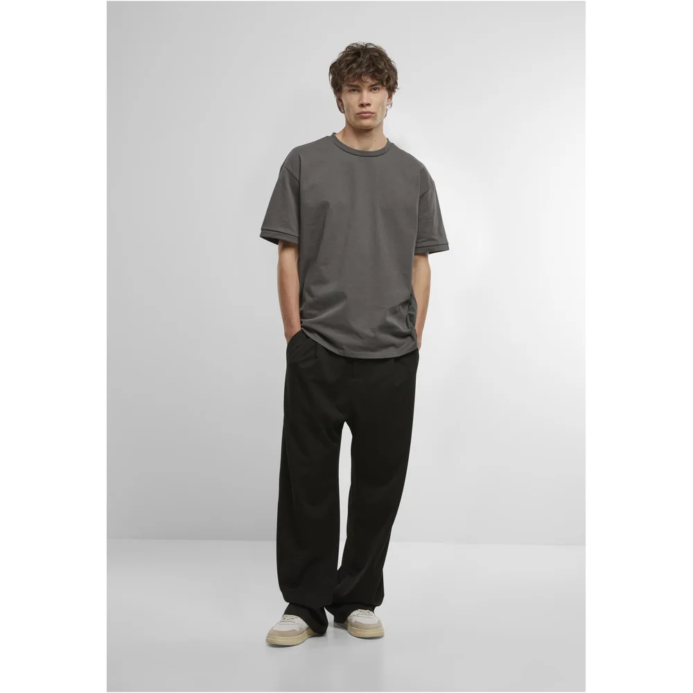Dieses T-Shirt definiert modernen Minimalismus durch eine markante Oversized-Passform und überschnittene Schultern. Ein besonderes Design-Detail sind die Ärmelabschlüsse mit breiten Rippstrickbündchen, die dem Shirt eine strukturierte Silhouette verleihen. Der klassische Rundhalsausschnitt und der gerade Saum unterstreichen den cleanen Look. Gefertigt aus einem hochwertigen, schweren Stoff, bietet das Oberteil einen hervorragenden Fall und maximalen Tragekomfort ein unverzichtbares Basic für urbane Layering-Styles.