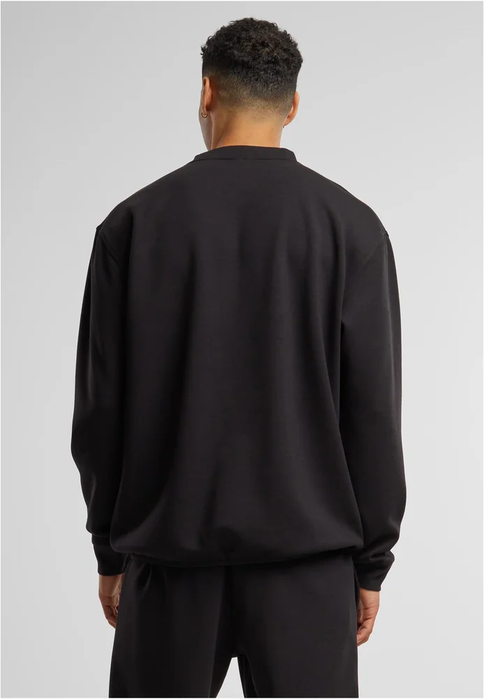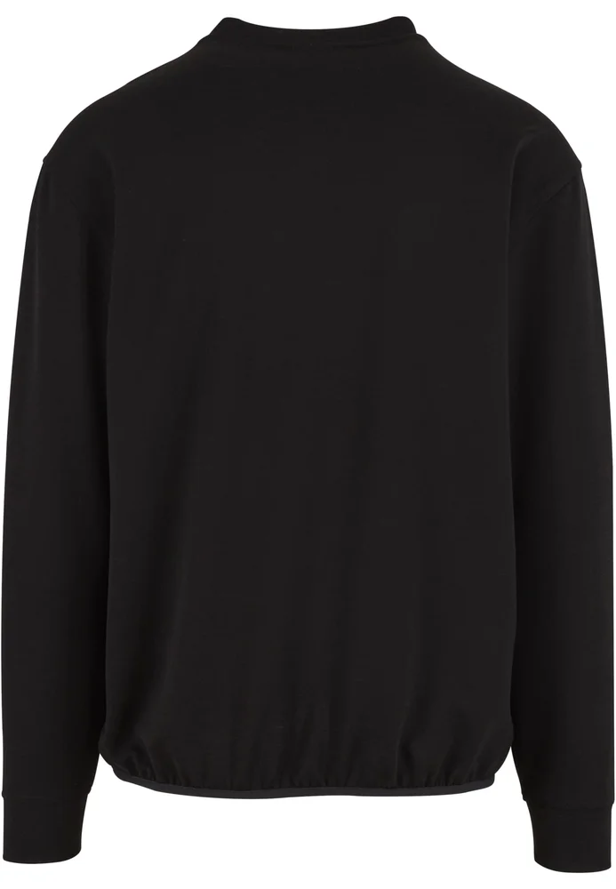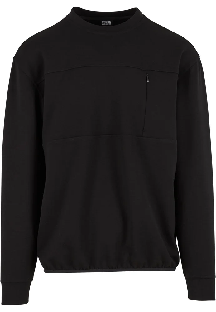 Crewneck für den Alltag, gestaltet als relaxed fit und ideal als everyday layer für Freizeit und Reisen. Hergestellt aus einem leicht strukturierten, stretchigen Polyester-Mischgewebe, vermittelt das Sweatshirt eine glatte, formstabile Haptik bei dennoch angenehmer Bewegungsfreiheit. Die Konstruktion zeigt eine runde Halslösung, eingesetzte Ärmel und eine reguläre Länge, ergänzt durch eine sichtbare Brusttasche mit Reißverschluss sowie dezente nahtteilige Panels über der Brust. Rippbündchen an Ärmeln und Saum sorgen für guten Sitz, während die überschnittene Schulterpartie und der locker fallende Schnitt ein modernes, lässiges Erscheinungsbild schaffen, das sich unkompliziert zu verschiedenen Outfits kombinieren lässt.