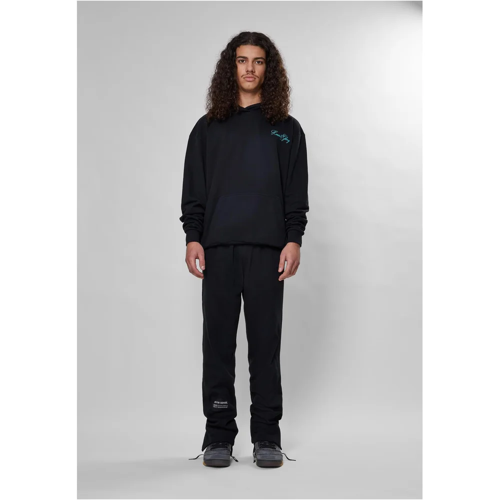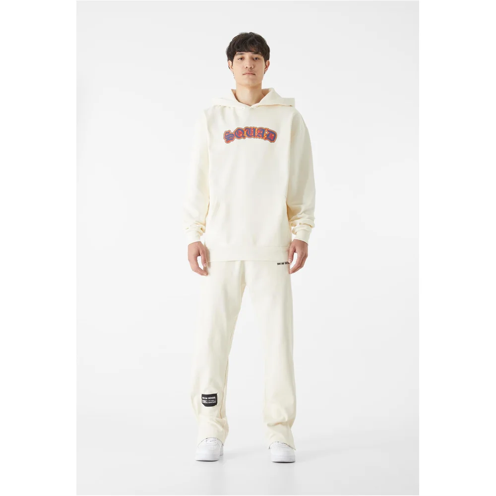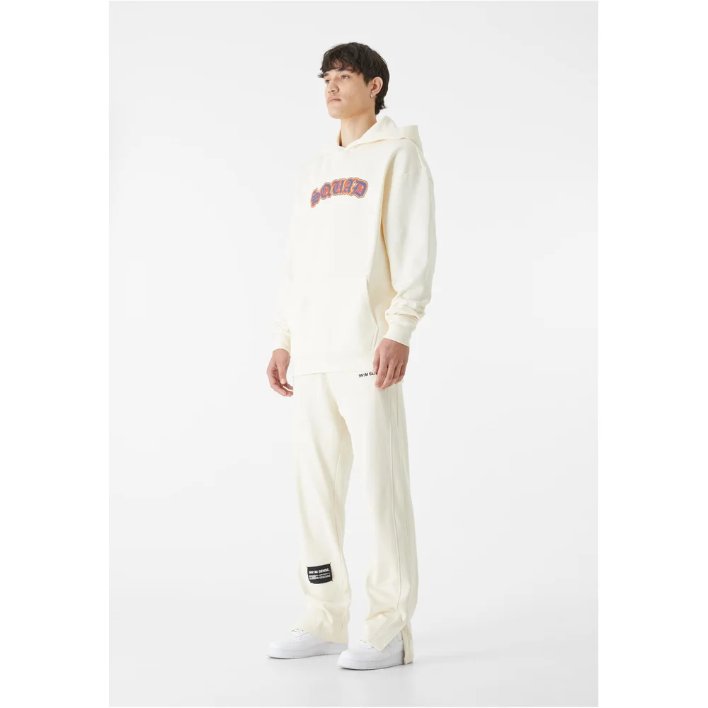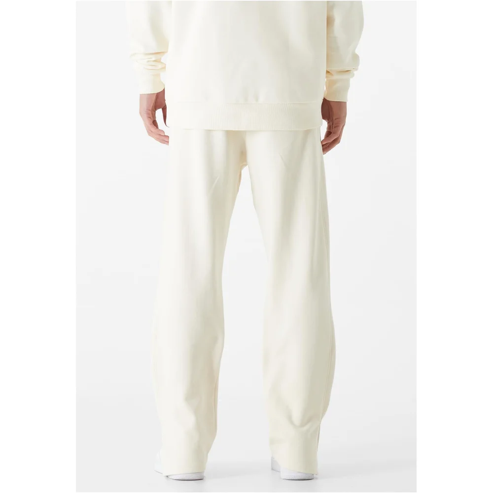 Sweatpants mit weiter Beinform, die sich als entspannte Alltagslage eignen, präsentieren sich in einem regular fit mit mid rise und langer Silhouette, die lässig über den Schuhen fällt; aus weichem Baumwoll-Jersey gearbeitet, fühlt sich das Modell robust und komfortabel an und bietet Bewegungsfreiheit bei zugleich strukturierter Optik. Der Schnitt verbindet eine breite Hose mit einem praktischen Bund mit Kordelzug und verdeckten Eingrifftaschen, dazu kommen dezente Stickerei und ein applizierter Patch als Akzente. Die Verarbeitung zeigt klare Nähte und einen geraden Saum, sodass die Hose sowohl für entspannte Tage als auch für bewusst reduzierte Looks funktioniert.
