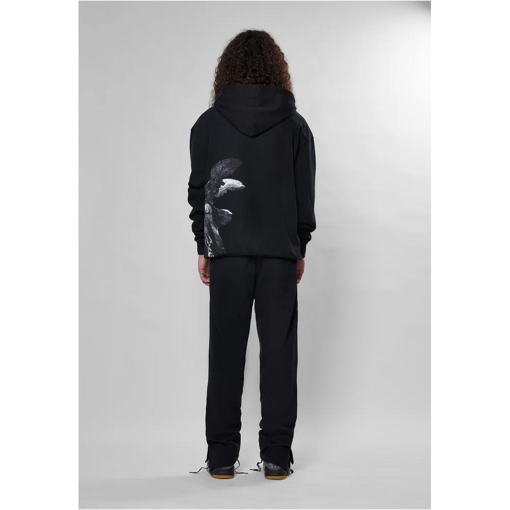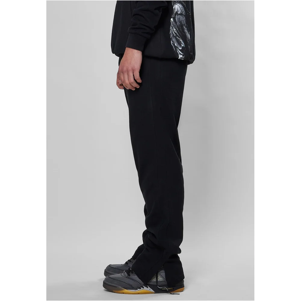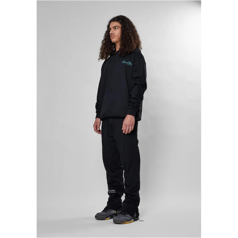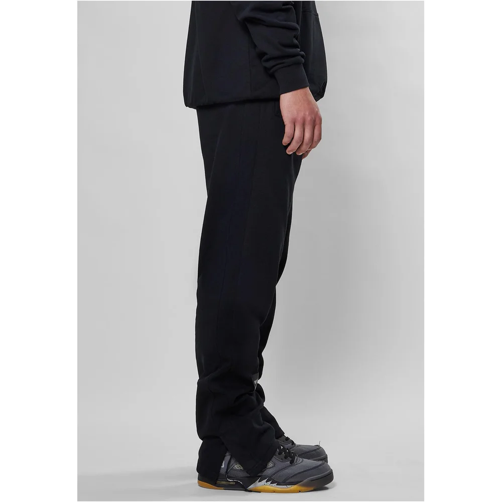 Sweatpants mit weiter Beinform, die sich als entspannte Alltagslage eignen, präsentieren sich in einem regular fit mit mid rise und langer Silhouette, die lässig über den Schuhen fällt; aus weichem Baumwoll-Jersey gearbeitet, fühlt sich das Modell robust und komfortabel an und bietet Bewegungsfreiheit bei zugleich strukturierter Optik. Der Schnitt verbindet eine breite Hose mit einem praktischen Bund mit Kordelzug und verdeckten Eingrifftaschen, dazu kommen dezente Stickerei und ein applizierter Patch als Akzente. Die Verarbeitung zeigt klare Nähte und einen geraden Saum, sodass die Hose sowohl für entspannte Tage als auch für bewusst reduzierte Looks funktioniert.