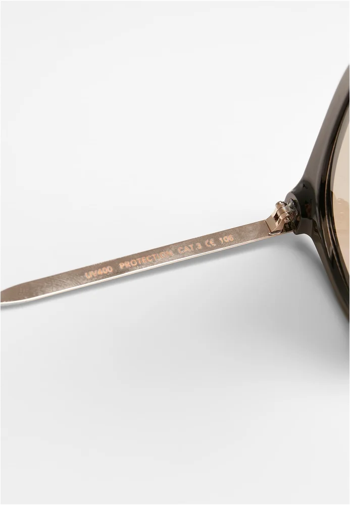 Extravagant und auffällig präsentiert sich diese Urban Classics Sonnenbrille mit großen, tief gezogenen Gläsern mit UV400 Schutz und einer geraden Augenbrauenpartie, die im Design an die sportliche Shield-Form angelehnt ist. Der Nasensteg ist breit, ebenso die geraden Bügel. Die Brille kommt mit einer Hülle samt Kordelzug und Urban Classics Print zum sicheren Verstauen. Sie besteht aus Polycarbonat und Kupfer.