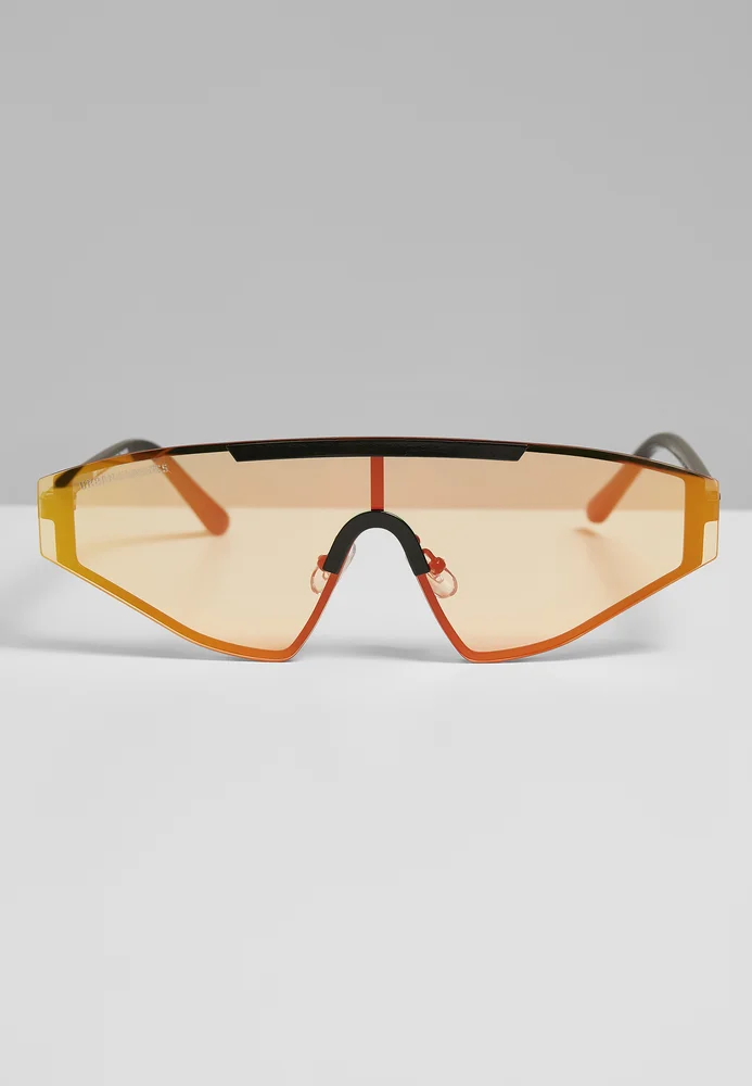 Die sportliche Urban Classics Sonnenbrille in Shield-Form kommt im Zweierset in zwei Farbvarianten. Die Gläser sind dreieckig, der Steg ist verglast und die Bügel sind fein und gerade. Durch einen Einsatz über dem Nasensteg wird der halbrunde Brauenbügel der Sonnenbrille betont. Ihre flexiblen Nasenpads garantieren eine optimale Passform, Schutz für die Augen bietet UV 400. Die großflächige Sonnenbrille besteht aus Polykarbonat, rostfreiem Stahl und Kupfer.