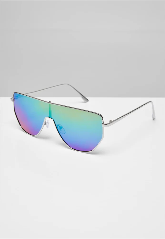 Die auffällige Sonnenbrille setzt mit ihrem durchgängigen Glas und einem Farbverlauf in Rainbow-Optik ein auffälliges Zeichen das Modell heißt Palm Springs und nimmt damit auch Bezug auf die gleichnamige Stadt, die die größte LGBTQ+ Gemeinde aufweist. Das bunte Glas mit UV Schutz 400 wird von einem feinen Metallrahmen eingefasst und von geraden, schmalen Bügeln getragen. Die flexiblen Nasenpads sorgen für eine optimale Passform. Das Modell besteht aus Polycarbonat, Stainless Steel und Kupfer. Es kommt im Set mit einer Schutzhülle mit Urban Classics Schriftzug und Kordelzug.