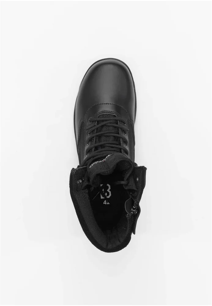 Ein schlichter Boot aus Nylon und Kunstleder, der mit Optik und Funktionalität punktet und nicht zu klobig daher kommt. Die Gummisohle bietet dir mit ihrem starken Profil Halt auf rutschigem Boden und sorgt außerdem für lautloses Auftreten. Den Knöchel stabilisiert der hohe Schaft des Stiefels und die durchdachte Anordnung der Schnürung. Schnelles An- und Ausziehen wird dank dem integrierten Reißverschluss möglich. Auch bei kalten Temperaturen kannst du dich auf den Tactical Boot verlassen: Seine Thinsulate-Isolierung im Inneren hält deine Füße garantiert warm.