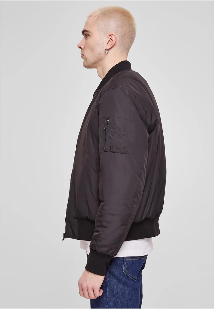 Unprätentiös gibt sich diese Herren Bomber Jacke im klassischen Look: mit Frontreißverschluss, breiten gerippten Bündchen an Ärmeln und Saum sowie einem ebenfalls gerippten Stehkragen. Auf dem linken Oberarm sitzt eine zum Style gehörende Reißverschlusstasche. Die Bomber Jacke verfügt zudem über eine Innentasche und zwei Seitentaschen. Sie ist mit gestepptem Futter ausgelegt und besteht aus anteilig recyceltem Polyester. Ihre Regular Fit Passform bedeutet bewährten Tragekomfort.